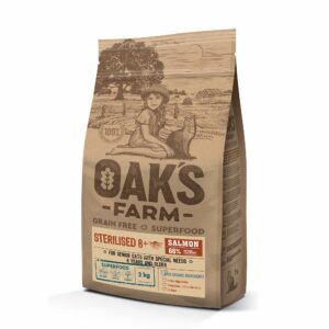 אוקס פארם היפואלרגני סטרלייז ללא דגנים על בסיס סלמון לחתולים מבוגרים מסורסים ולמעוקרות