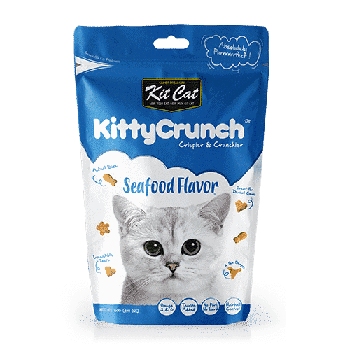חטיף קיטי קראנץ’ בטעם פירות ים לחתול. נוצר על ידי תזונאים על ידי צירוף של מגוון מרכיבים שנבחרו בקפידה. פריכים במיוחד ובעלי טעימות גבוהה שחתולים אוהבים.